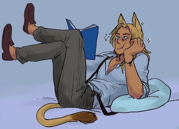 HAIR: The color of spun gold and worn long, in the fashion of the storybook knights he admires and wishes to emulate.EYES: Blue as bright as the clear sky.BUILD: Short by miqo’te standards, thickset and stocky, Jude is powerfully built in a way that isn’t quite proportional with his diminutive frame, to the point that he sometimes has difficulty finding equipment that fits him properly.Hobbies: