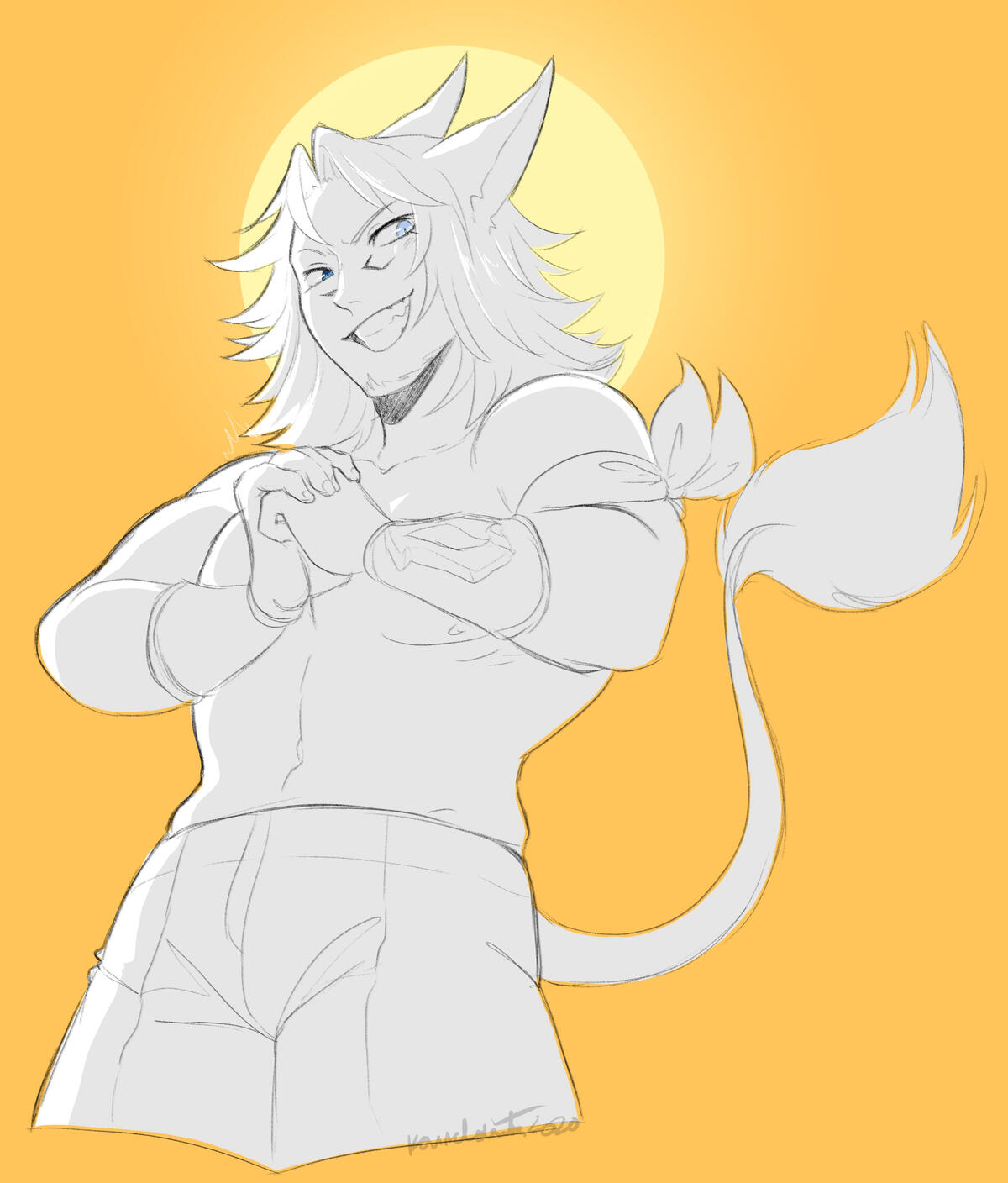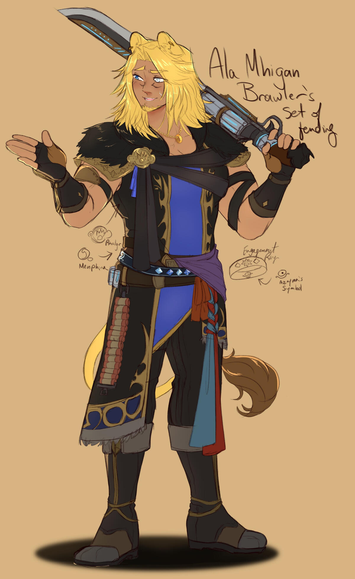 The aftermath of the Calamity saw the formation of many free companies looking to capitalize on the chaos of Dalamud’s fall to earth. The Ul'dah-based Brotherhood of the Lotus Flower was one of a hundred such free companies, and with nothing to offer but their swords, they struggled to distinguish themselves from their rivals in the eyes of prospective clients, to whom one company of sellswords was as good as any.In an effort to set themselves apart, the Brotherhood’s mages began to research golems and the myriad methods of their creation, seeking a way to create a weapon they could use to dominate their rivals and corner the mercenary market. At great expense, and after much loss of life, they eventually uncovered something even more valuable: the buried remains of an artificial lifeform, interred with a tomestone chronicling the lifeform's construction- an ancient Allagan security droid, dead for centuries, but otherwise in perfect condition, and visually indistinguishable from a miqo'te youth of about twenty summers.Further study of the tomestone clutched in the youth's hands lead to the realization that the lifeform they'd found was not dead, but merely deactivated- with sufficient magical expertise, it could be revived, and reprogrammed to serve whatever purpose the owner desired. Once restored to working order, this being would seem to be a living, breathing person, but would have no past to be burdened by, nor a future to which it was beholden. It could be brought into world with a perfectly crafted body designed for peak fighting proficiency, loyal only to the Brotherhood of the Lotus Flower, the free company that restored it to life.More than just a living weapon, this being could be a truly perfect soldier that the company could rally around, capable of leading other fighters, yet never aspiring to rise above its station as a battle commander.However, theory and practice are rarely coincident, and as it turned out, the creation process was extremely difficult; the magic involved in the endeavor required so much aether from the creator that it was thought to be nigh impossible, though this did little to discourage the Brotherhood’s more daring mages from pushing themselves to the brink of death in the trying. Eventually, they were forced to conclude that the task set to them was beyond the scope of their not inconsiderable skills. Invested as they were, they were left with little recourse but to look for outside talent.Salvation came in the form of one Desdemona Thermidor, an Ishgardian noblewoman of some renown with a penchant for unconventional magic and a taste for coin. Loathe as the Brotherhood was to part with their swiftly dwindling resources, they gave Desdemona access to their studies, a well-stocked laboratory in Ul'dah’s Pearl Lane, and a considerable sum of gold, with the understanding that her experimentation would conclude with the creation of the perfect soldier they had so long coveted.Jude Paw is the result of that experimentation. Desdemona succeeded in reviving the droid, and successfully reprogrammed him- all memory of his previous life in Ancient Allag was locked away behind mental barriers he would never have the ability to breach, leaving only the impulse to fight and follow orders.For reasons known only to Desdemona herself, however, Jude's reprogrammer elected not to hand him over to the Brotherhood of the Lotus Flower upon his revival, instead taking him with her to Limsa Lominsa. He stayed there with Desdemona for a time, believing himself to be her son and never knowing the purpose for which he was made, or truly grasping the significance of his existence. His life was simple, but having never known anything else, he was content with it.Eventually, it became clear to Desdemona that she would not be able to evade the hired knives of her double-crossed enemies for very long with Jude in tow. She took her leave of Limsa Lominsa one foggy morning before Jude awoke, leaving him a hefty purse of coin and a letter of introduction to the Adventurer’s Guild, believing that with the martial skills coded into his body, he would survive well enough on his own.In that, she proved to be right. Though he was heartbroken by his mother’s sudden, unexplained departure, he had no trouble finding work with the Guild. His mother had taught him to read a little before she left him, and fighting came as naturally to Jude Paw as breathing- it was, after all, what he had been created to do, if not what he was necessarily meant to do. He served with the Guild for a number of years, having many adventures of note in that time.It was through the Guild that he eventually found himself in the service of a lesser lord of one of Ul'dah's noble houses. Serving as the noble’s guardsman while he traveled Eorzea, Jude and the noble became fast friends, an entirely new experience for Jude. The noble expanded on Desdemona’s lessons, teaching Jude to write and helping him to improve his reading, all the while telling him stories of Ishgard’s Knights Twelve. These stories, his travels through the land of Eorzea, and other stories he has since read in books, helped Jude decide on his path in life: he would become a knight, too, one who adventurers would tell stories of.This aspiration toward knighthood lead to Jude joining the ranks of the Riskbreakers, an Ala Mhigan free company dedicated to defending Eorzea from the threat of the Garlean Empire. His time with the company introduced him to the people and customs of Ala Mhigo, and he soon became embroiled in the occupied nation's struggle for freedom. A chance encounter with the terrifyingly powerful Zenos yae Galvus at Rhalgr's Reach, however, ended Jude's dreams of heroism, and drove him to flee from his free company, and from the life he had painstakingly built for himself.Alone and disgraced, he wandered the world in search of the truth behind his origins, eventually finding the answers he was looking for in the far-flu